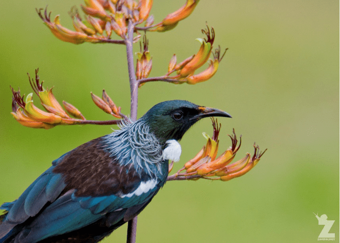 The harakeke/flax plant that grows around swamps throughout Aotearoa is much valued by Māori. In the summer months the Tūī love to come and dip their beaks into the sweet nectar within the colorful chalices on the branches. The whakatauakī (saying) above is a reminder from ancestral Māori to take notice of such beauty. Observe how nature provides. The beautiful singing of the Tūī completes the scene: a hymn of praise and thanksgiving we might say.