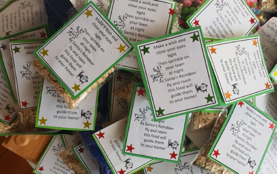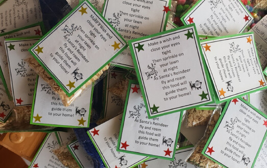 Both St. Paul’s Primary School and Garin College get on board with assisting the Christmas Hamper Appeal by holding food drives to collect non-perishable food items to put into the hampers. The St. Paul’s Vinnies also assist by creating Christmas cards to put with each of the hampers. The number of recipients on the list grew last year to sixty members in the community receiving a hamper and so the Vinnies were kept busy creating just as many Christmas cards to meet demand. This year they have also added their own special gift of a little bag of Reindeer Sprinkle inside each card to help guide Santa’s reindeer to the homes of the recipients. We hope our glitter decorated oatmeal treats will attract those hungry reindeer but even if they don’t, we can be sure they will at least add a little fun and novelty in spreading Christmas cheer.
